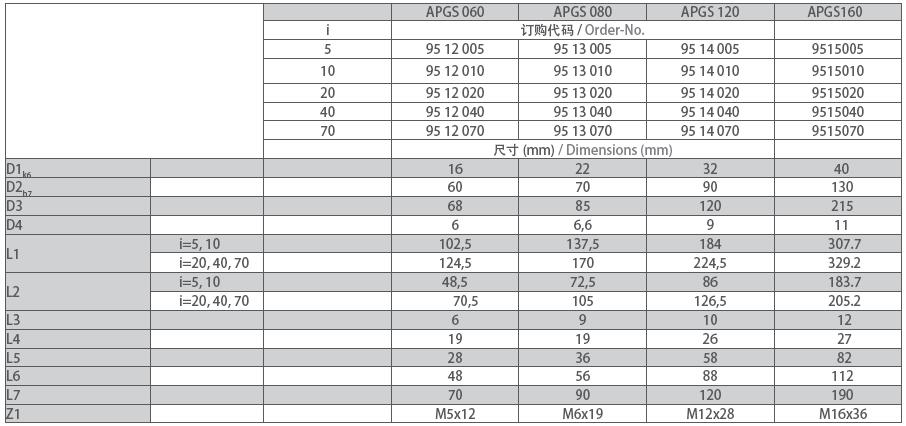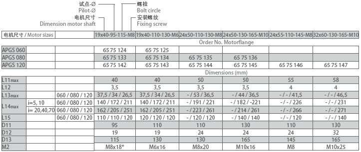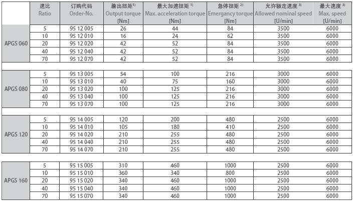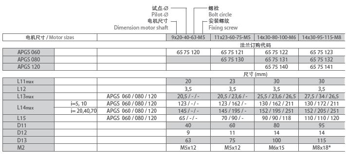*APGS系列行星减速器搭配使用齿轮,可查阅 Atlanta 选型样本 ZA-24、ZA-25 选择。