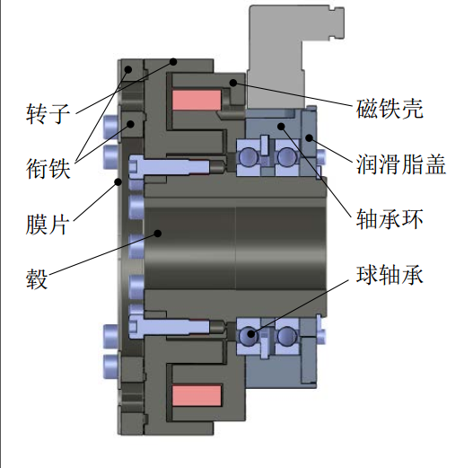 The design of Mönninghoff's pole face friction clutches is illustrated in Fig. 1 using the example of model 4.3 (bearing-mounted