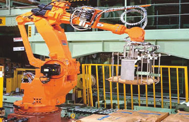 机器人搬运码垛可以使生产线全自动化生产,完全代替人工劳作。实现生产达到高效、高质量;搬运机器人主要为四轴和六轴机器人;搬运重量范围1Kg-1300Kg;